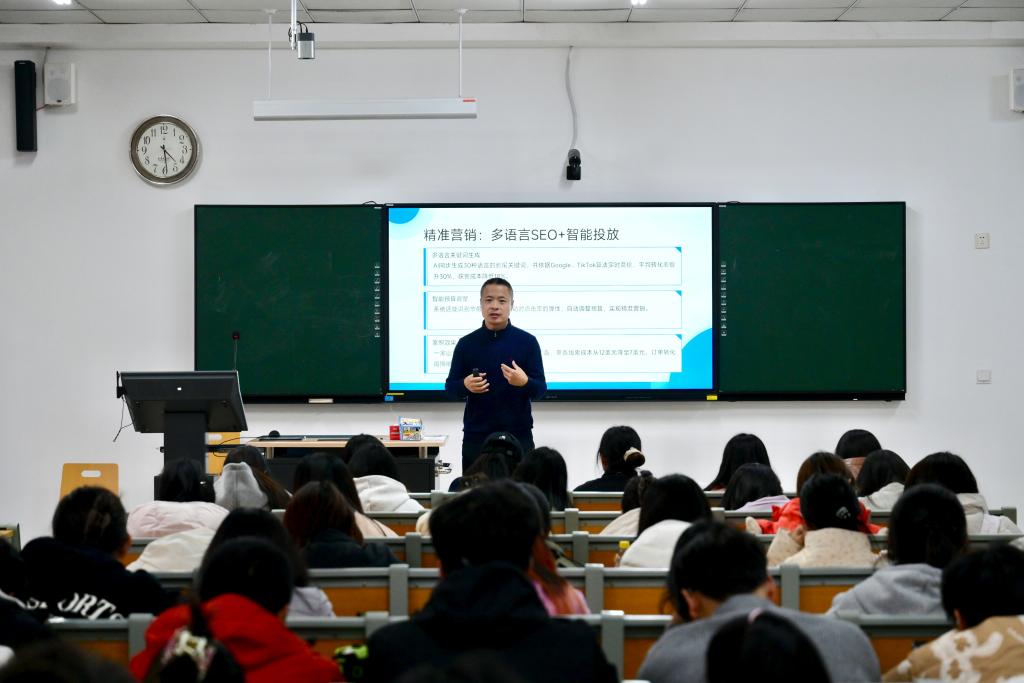 随后,开展了第一场支部共建活动。学院人工智能系教工党支部书记史涛以“AI重塑国际贸易全链路升级的新格局”为题,为天津师范大学国际经济与贸易专业学生带来了一场前沿、生动的学术报告。讲座深入浅出地介绍了人工智能技术在国际贸易各个环节中的应用,如智能供应链管理、大数据市场分析、跨语言智能客服、风险预测与防控等,描绘了AI技术如何重塑未来国际贸易的图景,激发了同学们对“AI+国贸”这一交叉领域的浓厚兴趣。现场互动热烈,同学们纷纷表示受益匪浅,对未来的专业学习和职业发展有了更清晰的认识和更广阔的视野。
