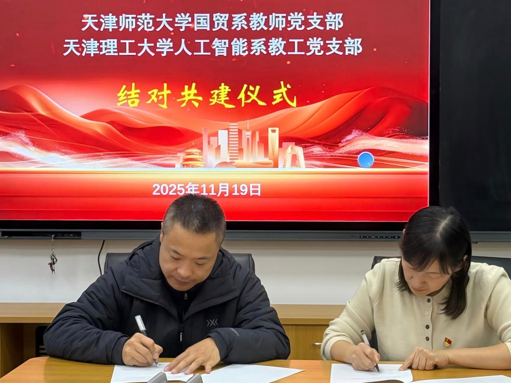 为探索党建与业务深度融合的新路径,促进跨学科交流与合作,11月19日,我院人工智能系教工党支部与天津师范大学国际贸易系教师党支部结对共建活动在天津师范大学经济学院成功举行。
