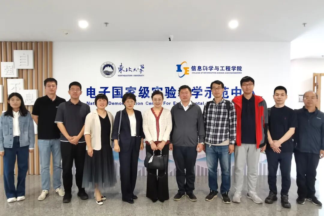 在东北大学信息科学与工程学院,学院主要负责同志介绍了教学科研相关情况。电子国家级实验教学示范中心负责同志介绍了实验室管理模式、实验教学改革开展情况、安全保障体系等方面的经验。工业智能与自动化系党总支负责同志详细介绍了全国党建工作样板支部工作的特色做法。双方就实验室建设开展了深入交流。随后,团队成员参观了电子国家级实验教学示范中心。