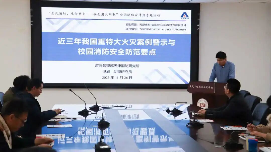 为深入学习贯彻党的二十届四中全会精神,增强师生党员消防安全意识与责任担当,11月26日,自动化系教工党支部、实验中心教工党支部与本科生党支部联合举办“安全责任重于山,党员担当践于行”校园消防安全主题党日活动。活动特邀应急管理部天津消防研究所冯旭助理研究员作题为“近三年我国重特大火灾案例警示与校园消防安全防范要点”的报告。师生党员齐聚一堂,共学消防知识,共筑校园安全防线。通过交流学习,大家深刻认识到校园安全对工作与生活的重要意义,进一步强化了科教协同育人使命,以昂扬姿态为谱写中国式现代化天津篇章贡献力量。